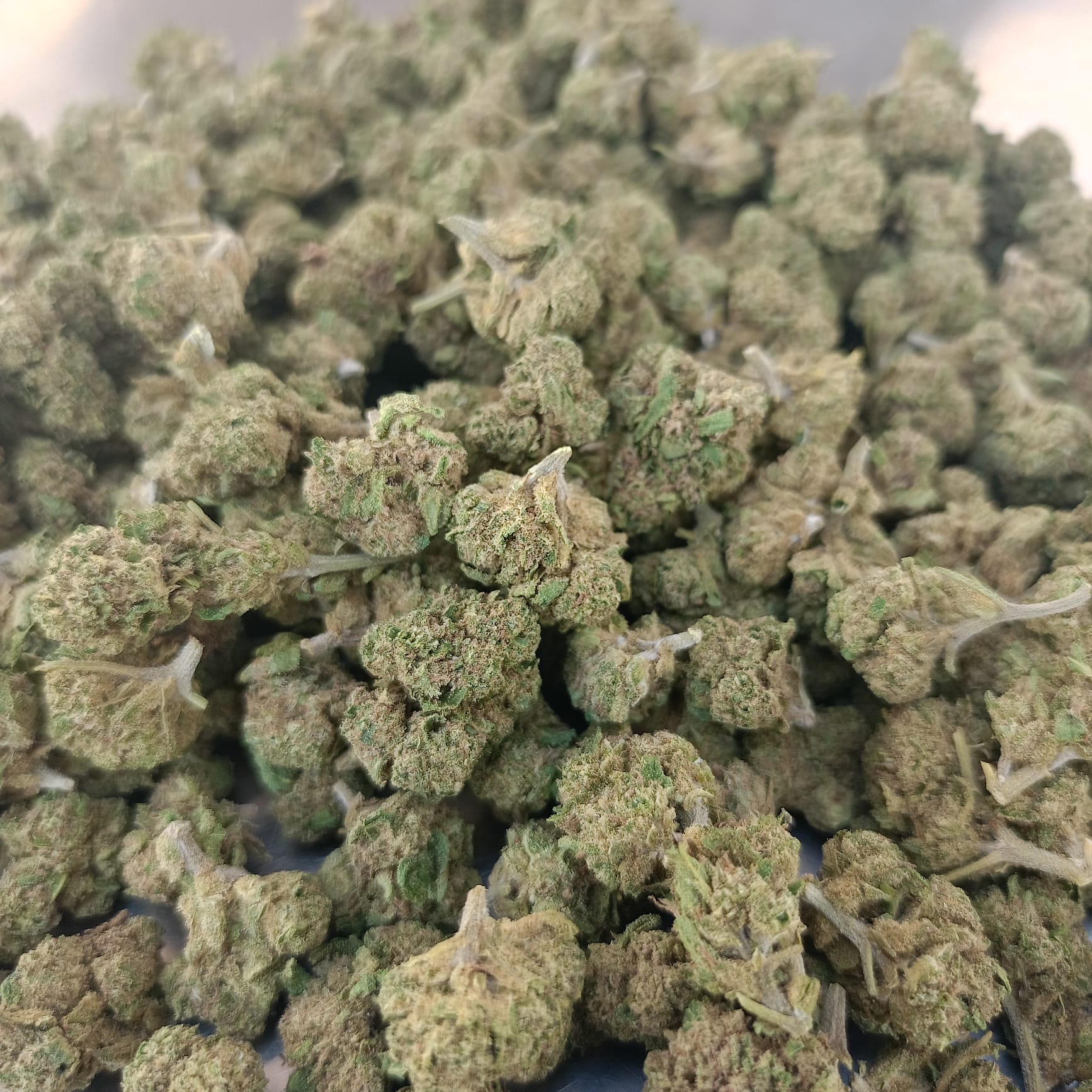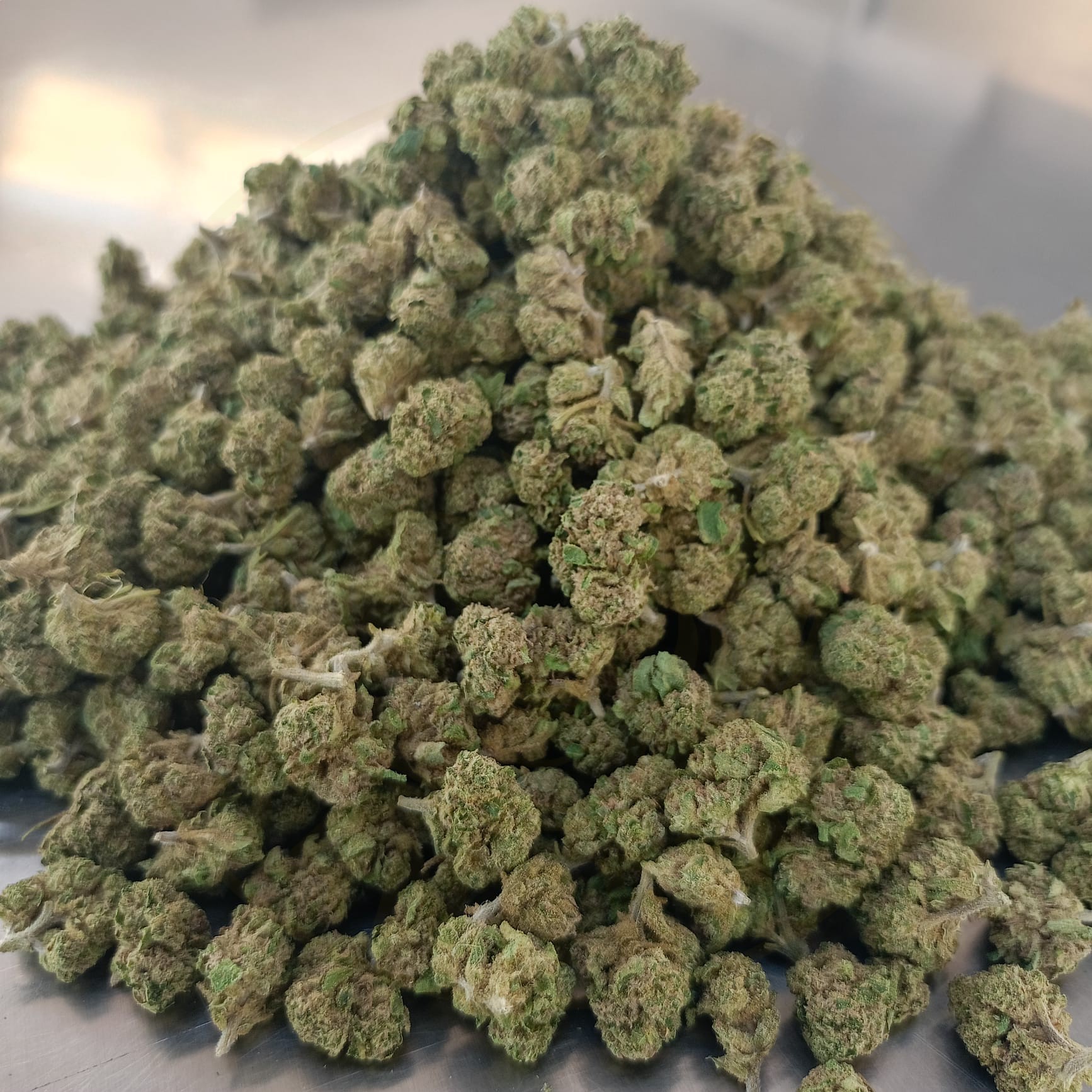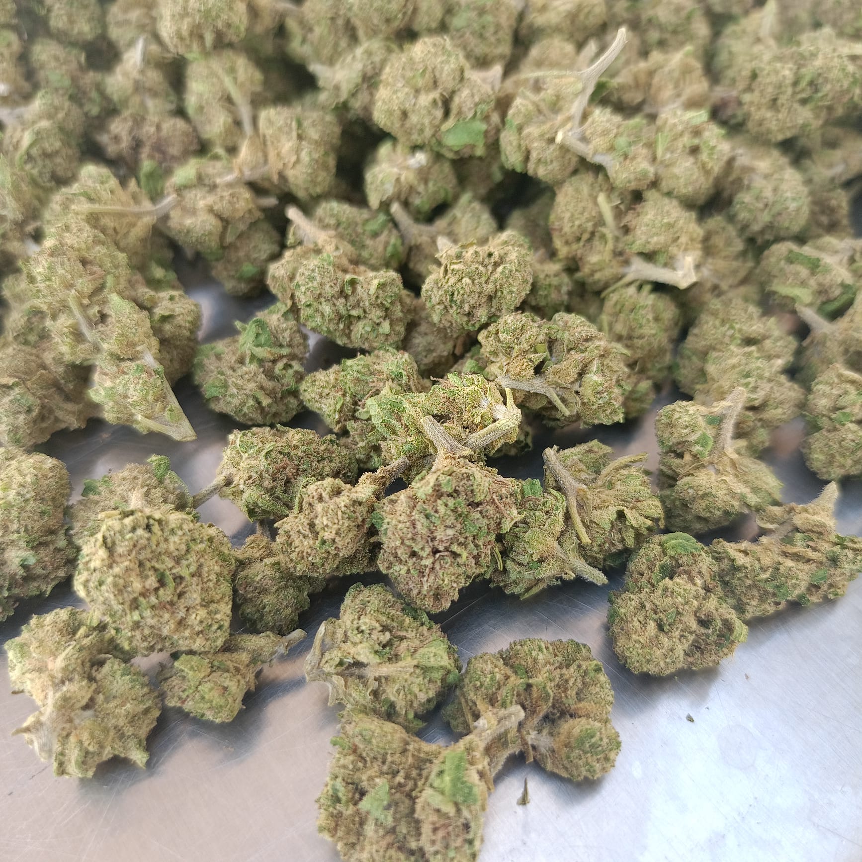 Las flores de pequeño tamaño, adquieren un color verde descolorido debido al recubrimiento blanco de tricomas que la envuelve completamente, un producto final realmente sorprendente a pesar del alto contenido de CBD. El efecto producido es embriagador.